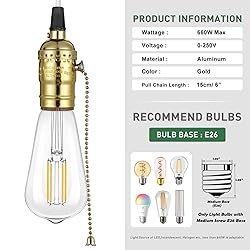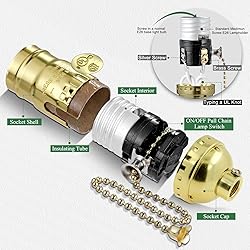 UL LISTED PULL CHAIN LIGHT SOCKET -Standard U.S. lamp socket with a 6" pull chain on/off switch.Smooth pullswitch operate easily and last longer.UL standard is safe for US electrical use. 4 COLORS DESIGN - The socket Replacement has 4 colors options that complements your existing lamp or home décor.It include the typical lamp fittings / threads,screw-in terminals for your repair or DIY needs. APPLICATION - Perfect socket replacement for a vintage lamp; Rewire antique floor lamp; repair old table lamp; fix bankers lamp; switch out household lamps with pull-chain sockets; replace a lamp pull switch;Replace turn knob switch socket into pull chain ON/OFF socket switches.Great for restoring, rewiring old table and floor lamps. SAFE AND EASY TO USE - The pull chain socket has a 250VAC/660W max electrical rating and recommended to use with #18 stranded 2-Pin wire.Compatible with the most LED CFL standard screw light bulbs.Easy to install and made for a quick fix within 30 minutes! WITH INSTRUCTIONS to guide you assembly process. No matter repair a vintage lamp or make a new custom lighting,you will have clear idea on each step through the wiring instructions.
