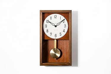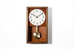Wall Clock Japanese Handcrafted Solid Wood Clock Rectangular Pendulum Clock Silent Non-Ticking Battery Operated Modern Decor for Living Room Bedroom Office HINOKI PENDULUM CLOCK CH-033 (BROWN)