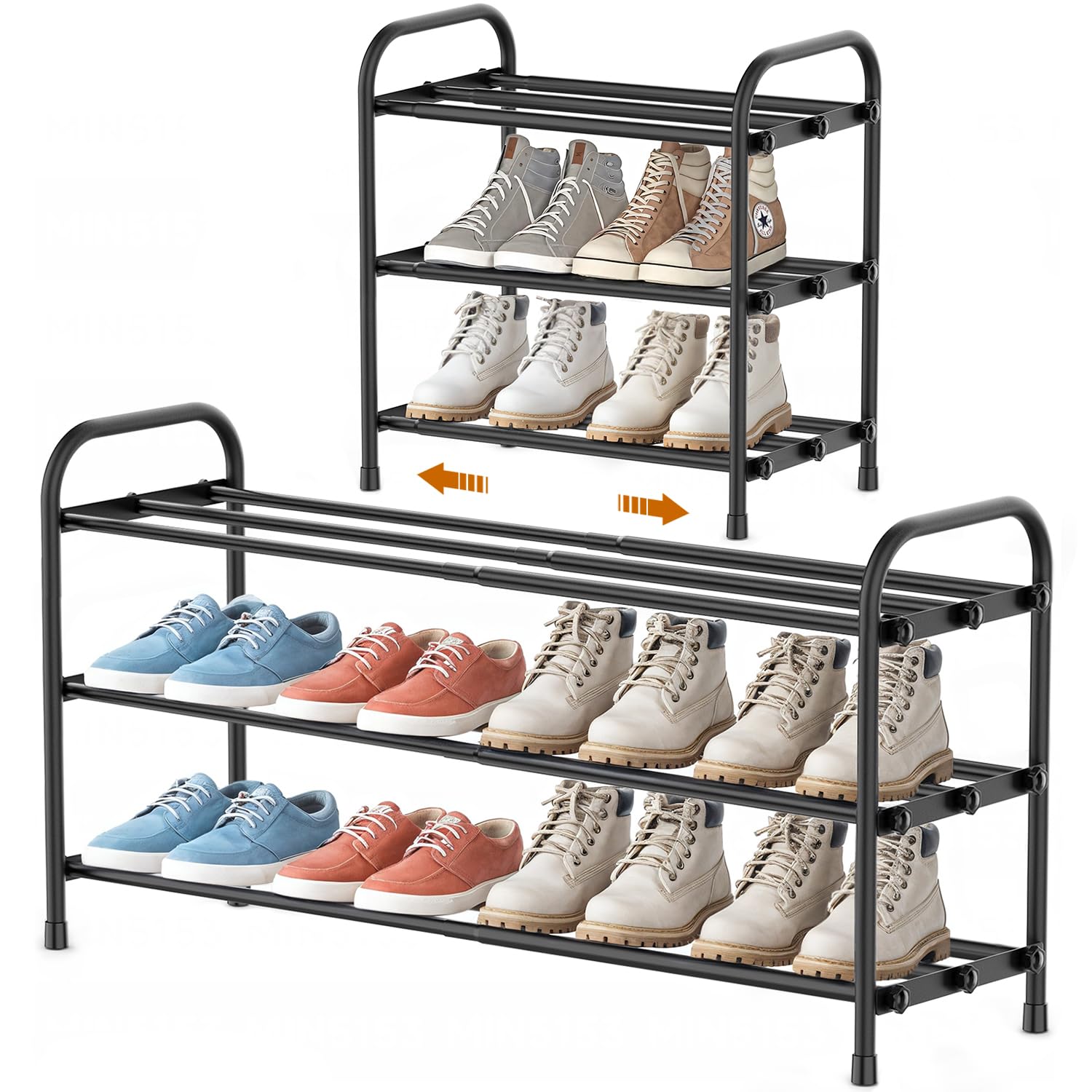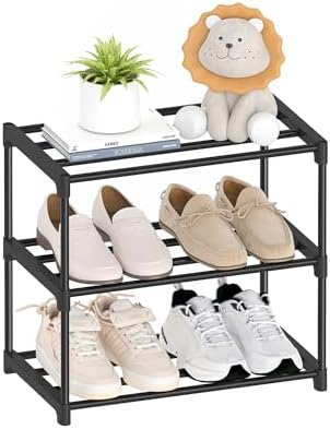 3 Tier Small Shoe Rack, Narrow Stackable Shoe Shelf for Kids Toddler Adult, Lightweight Shoe Rack Stand for Closet Dorm Storage Organizer, Front Door Entrance, Entryway