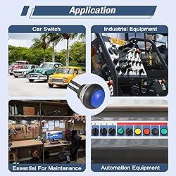 - VEXUNGA 12MM Waterproof Momentary Push Button Switch with Wires. There are five colors for you to choose from - red yellow green blue black PRODUCT PARAMETERS Working Voltage: 125V 250V Working Current: 1A-3A Insulation Resistance: 100MΩ Operating Temperature: -25℃ - 85℃ Electrical Life: 10,000 times Mechanical Life: 20,000 times Mounting Hole: Approx. 12mm Dielectric Strength: 1500 VAC / 1 min Terminal pins: 2 pins Working type: Self-reset button - press the button to turn on, the device immediately enters the working state; release the button to turn off, the device immediately stops running. Wide Range of Uses: Commonly used as vehicle horns, ignition switches and doorbells. - Widely used in industrial operations, such as modified vehicles, ships, motorcycles and other transportation equipment; suitable for household appliances, such as water dispensers, treadmills, coffee pots, etc., as well as electronic modification and automation equipment Packing List: 6 x momentary push button with wire (Blue)