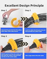 - Product Specification: 4.95 x 4.95 x 1.5 inches Color: Yellow & Grey Material: Polymer Weight: 0.33 lb Do you often feel confused about messy cable arrangements and increasingly frustrated with rigid and difficult to use sorting tools? This is a professional cable manager which design fully considers the convenience of engineers and the needs of site layout. With it, the cable layout will become efficient and concise, and you will no longer be bothered by the management of the cable. The wire comb networking tools include two parts, the yellow outer ring and the gery inner hub. When using, the cable that will need to be combed is loaded into the open slot of the grey hub. After the cable is loaded into the slot, the yellow outer ring and the grey hub can be matched with each other to prevent the cable from being displaced from the internal hub. The yellow outer ring has an opening, so combing allows cables to be added or removed at any time without having to start at the end of the cable.
