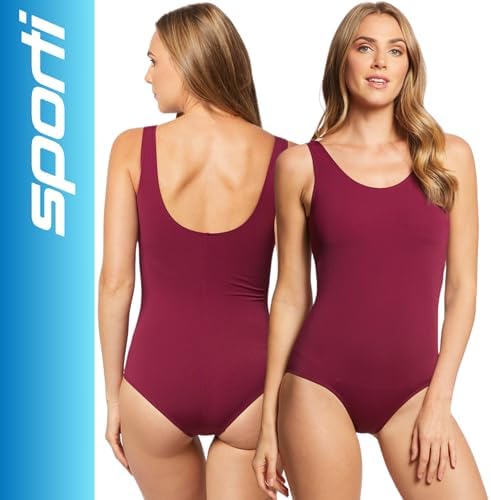 Sporti Women’s Athletic One Piece Swimsuit, HydroLast Chlorine-Resistant Scoop Back, UPF50+ Bra Support, for Lap, Training Swim & Water Aerobics - Cabernet - 10