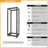 ADJUSTABLE DEPTH: The 19 inch server rack with adjustable top & bottom frame can be moved forward or backward to adjust the mounting depth from 20” to 30 “ that accommodate a wide range of 19” standard networking devices BUILD TO LAST: All-rivet structural connection with sturdy 2.0mm thickness cold rolled steel, this heavy duty server rack features 3” load-bearing casters which can withstand static load 1700lbs, and leveling feet supporting up to 1200lbs BROAD USAGE: The adjustable network rack with wheels is great choice for studio,office,AV,HIFI,home server,test lab,home lab,data centre,home theater,network switch, UPS and other 19” IT devices ALL HARDWARE ARE INCLUDED: 42U open frame rack comes with all hardware including m6 screws,m5 screws,cable management rings,casters,leveling feet and installation tools that can make the assembly easy and quick STURDY PACKAGING: Provide double boxed packaging and ensure that it is not damaged during transportation