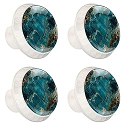 NEWzone 4 Pack Drawer Knobs Teal Turquoise Marble Cabinet Knobs Crystal Glass Knobs Pulls Handles for Kitchen Cabinet Hardware Cupboard Door Dresser Wardrobe Home Decor