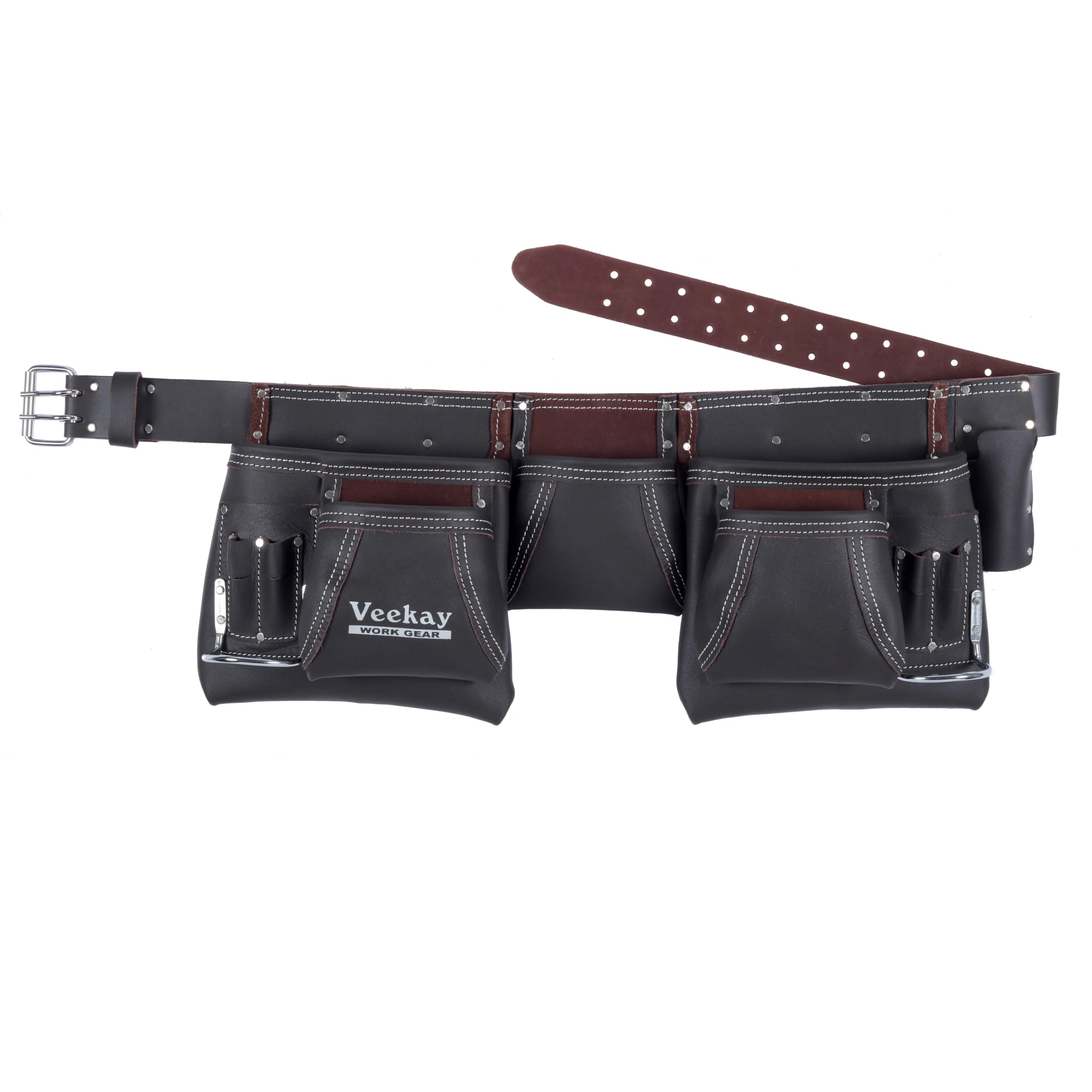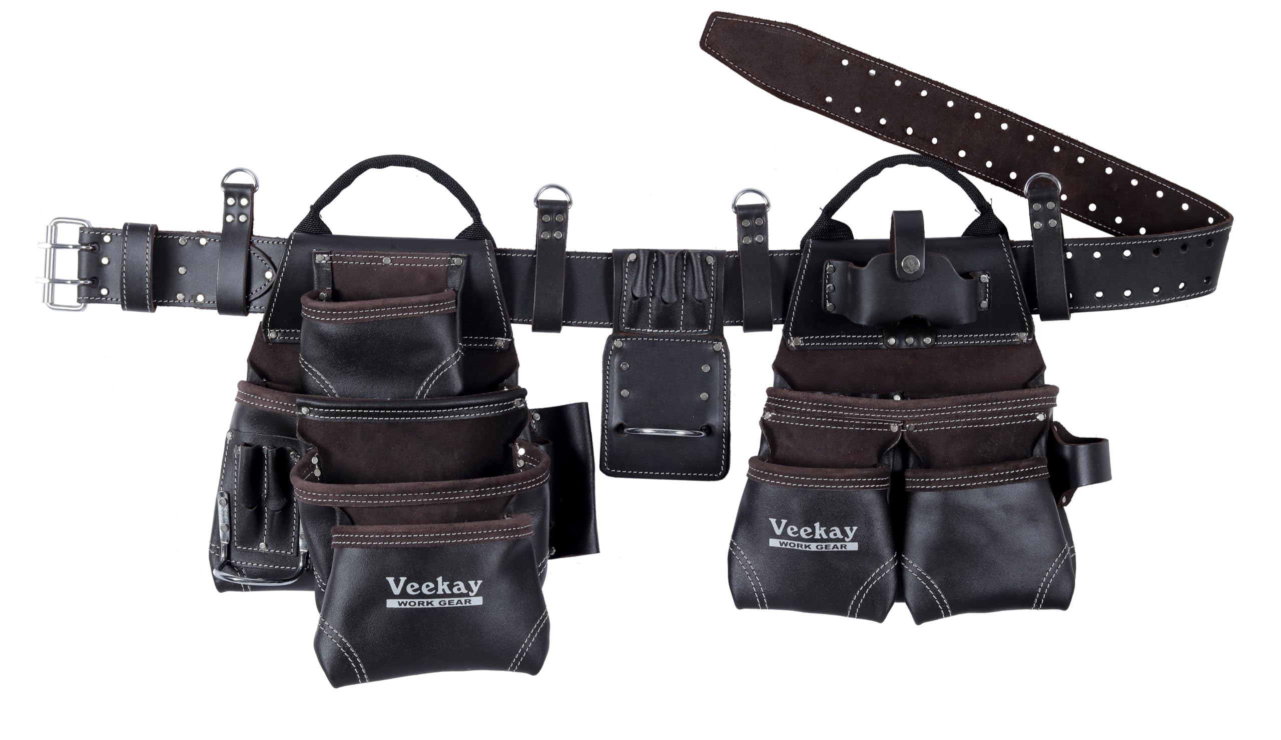 VEEKAY Scaffolding Belt - 5 Piece Black Leather Tool Belt, 2" Wide, Fits Waist Sizes from 32” to 46”, Includes 1 Hammer Holder, 1 Tape Measure Holder, and 3 Tool Holders for Full Tool Set