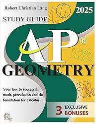 - Get top scores and secure a college future with the AP Geometry Study Guide New! Bonus Guided Meditation: An exclusive audio meditation designed to help kids relax, manage exam anxiety, and focus before study sessions or tests.Do you struggle to balance rigorous AP courses with extracurricular activities?Do you need a comprehensive and reliable resource to help you excel in AP Geometry and improve your college admission prospects?Do you want to have the key to success in math,precalculus, and the basics of calculus? We understand the challenges you face. The pressure to excel on AP exams can be overwhelming and lead to stress, time management issues, and even exam anxiety. As you struggle to master complex topics and juggle multiple responsibilities, it is easy to feel lost in a sea of information, not knowing where to turn for help.But you do not have to go through this alone.The AP Geometry Study Guide is here to provide you with a clear and structured path to success. Our guide is designed to address the specific pain points of AP students like you, offering detailed content reviews, practical problem-solving strategies, and effective techniques for tackling the exam with confidence.In AP GEOMETRIC you will discover that:Master every concept with confidence: From basic geometric principles to advanced topics, this guide covers it all with clear, in-depth explanations.Practice Makes Perfect: Access numerous practice questions and comprehensive practice exams designed to help you identify your strengths and weaknesses.Effective test-taking strategies: Learn proven techniques for managing time, reducing anxiety, and approaching each question with a clear strategy.Visual and interactive learning: Engage with the content through diagrams and step-by-step problem-solving guides.Tailored Study Plans: Choose from several study plans that fit your schedule, whether you need a quick review or an in-depth study session.Accessible and affordable: Designed for students of all backgrounds to ensure everyone has the opportunity to succeed.Bonus 1: Customized study plans - Practice tests and reviewBonus 2: FlashcardsImagine receiving your AP scores and earning the highest grades needed to secure a place at your dream university, perhaps landing a scholarship that reduces the financial burden of tuition. Imagine yourself walking confidently into the exam room, knowing that you have prepared thoroughly and are ready to tackle whatever comes your way.Start your journey to academic excellence today: purchase the AP Geometry Study Guide and unleash your full potential!