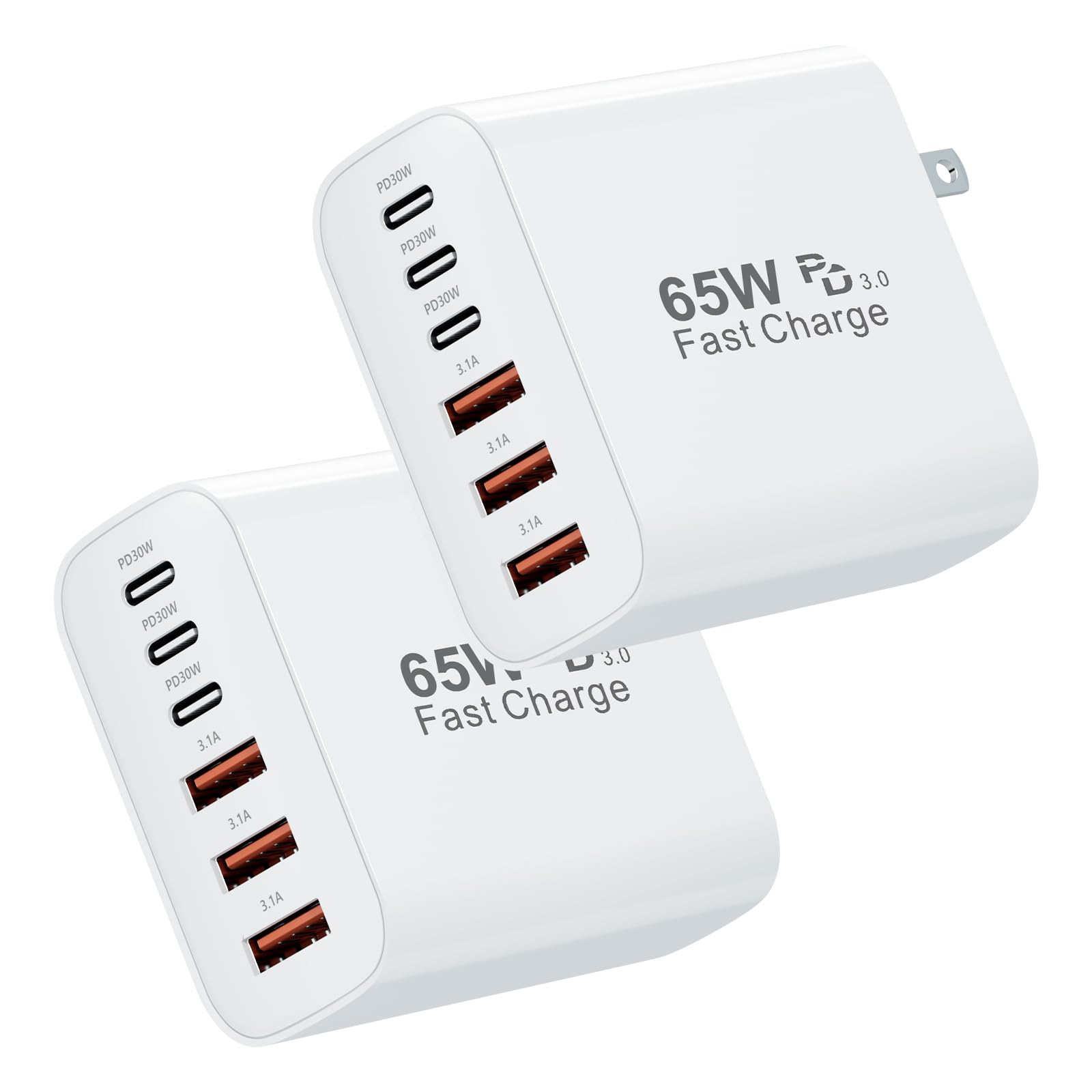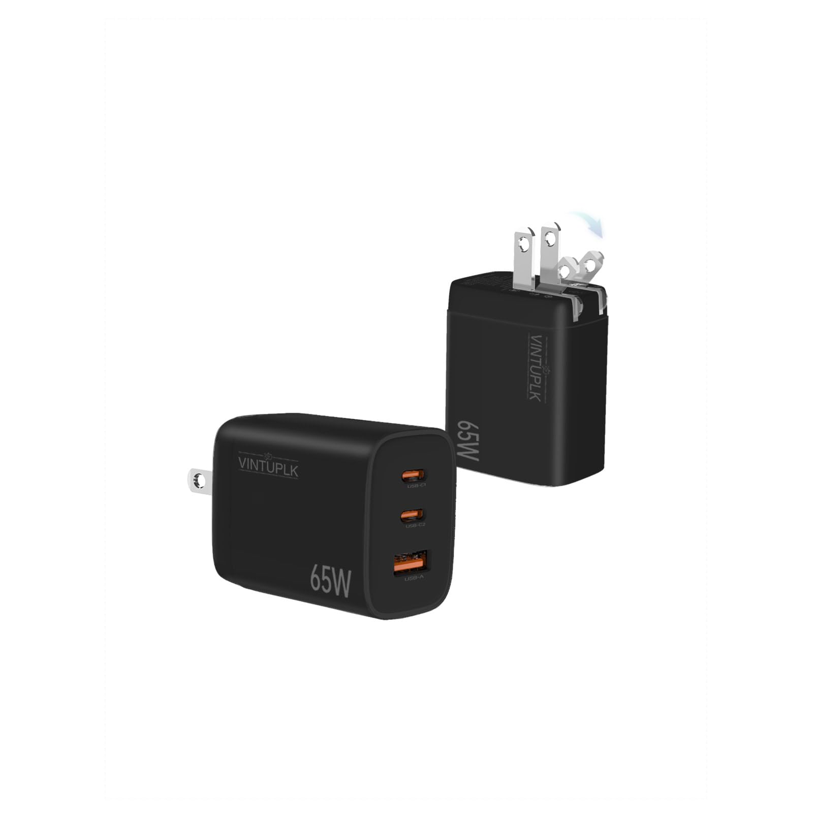 65W Flat GaN USB C Charger, Dual-Port Fast Wall Charger with PD 3.0 & QC 4.0, Foldable Plug Compact Power Adapter for MacBook Pro/Air, iPhone 16, iPad Pro, Samsung Galaxy S24, Steam Deck & More