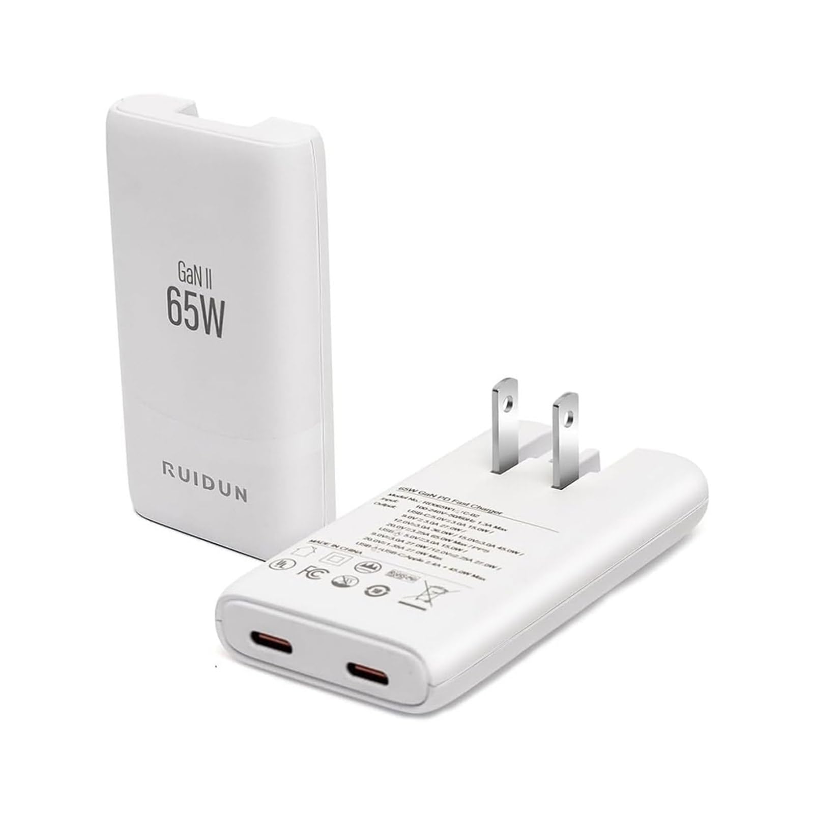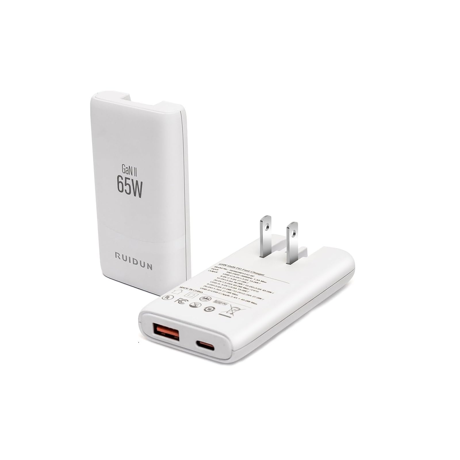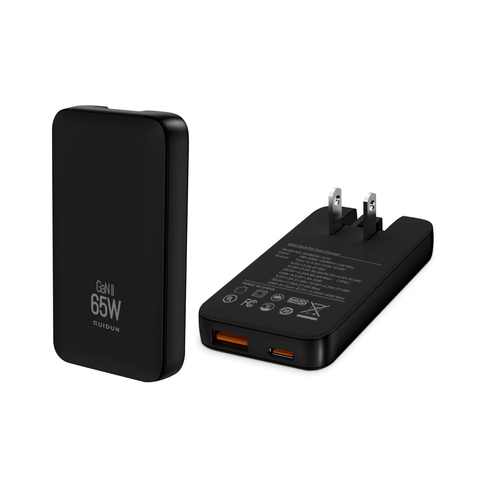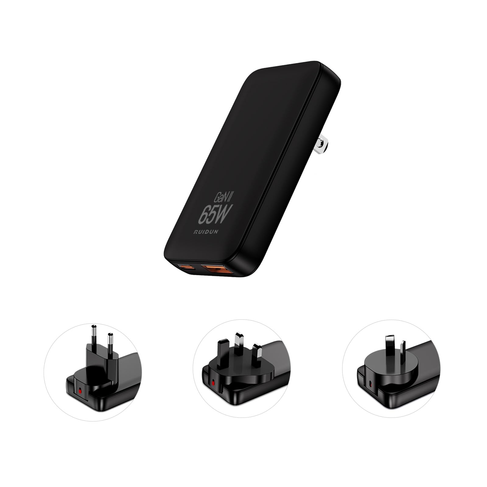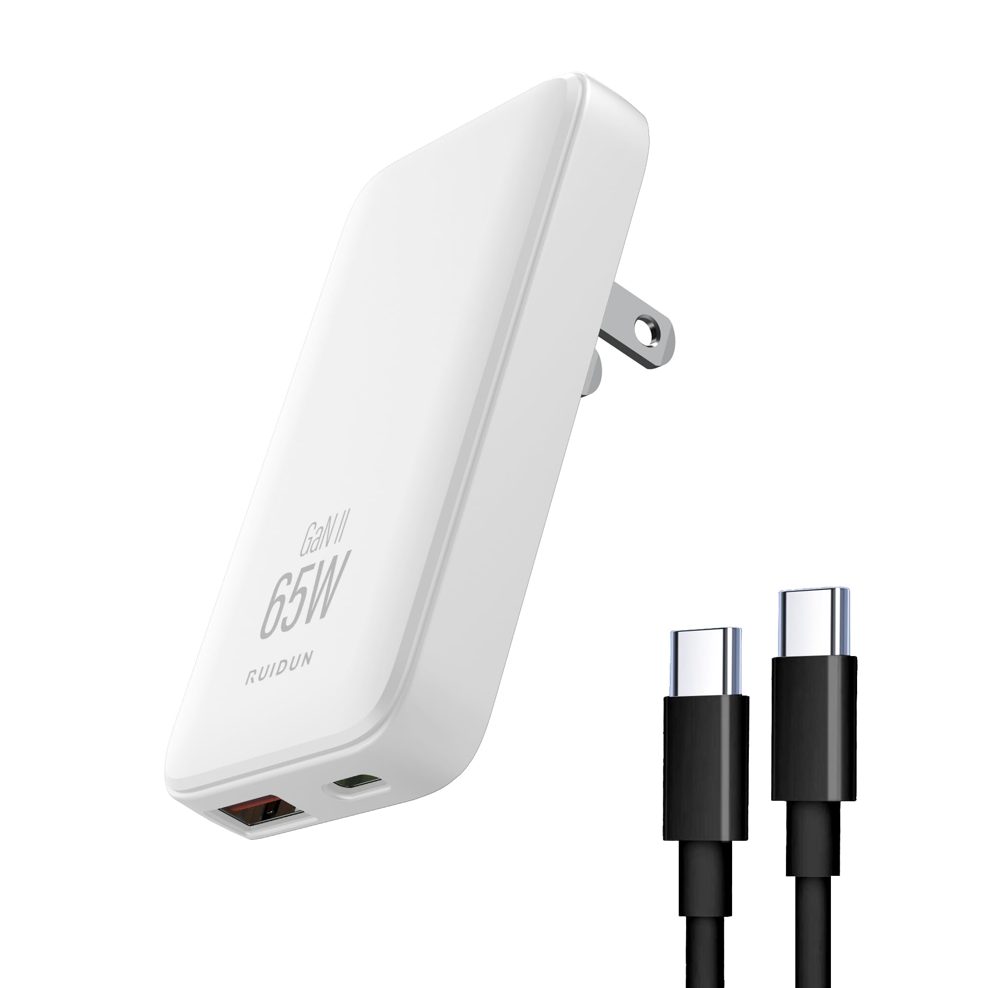- ✔Compact and Powerful: RUIDUN's 65W GaN Charger is ultra-compact, at just 0.55" thick. It’s perfect for travel or desk use, offering high power in a portable design