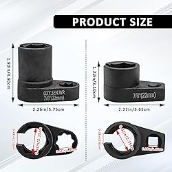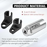 【High Quality Materials】Made from premium chrome molybdenum steel, high-quality materials and is durable. these ocygen oxygen sensor are built for strength. 【Heavy-Duty Tools】All parts are durable and resistant to wear and corrosion, Wire gate allows you to easily slip the socket onto the sensor. 【USE】The o2 oxygen sensor socket offset wrench remover set for removing, it covers every essential step, from removing worn sensors and inspecting components to replacing and installing new sensors efficiently. 【Size】3/8 inch drive x 7/8 inch deep socket; 1/2 inch drive 7/8 inch deep socket, 3/8 inch drive x 7/8 inch socket. Fits all standard oxygen sensors with a 7/8” hexagon nut. 【Design】The cut-out and slot design of the automotive oxygen sensor, feature a standard 6-point design, enables the socket to be installed on the connected wiring harness and preventing any damage to the wires.
