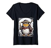 Womens Penguin Linux Samurai Programming Nerd Warrior V-Neck T-Shirt