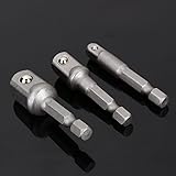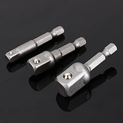[Versatile Usage] Transform your hand socket set into a driven socket set, replacing the need for a ratchet with a power tool. [Secure Holding] Spring-loaded ball bearing on head securely holds sockets, suitable for chuck systems. [Multifunctional Set] Includes 3 socket adapters (1/4, 3/8, 1/2) for impact drivers, drills, and power tools. [Superior Quality] Brand new with chrome steel construction, for heavy-duty impact drivers. [Impact Ready] Rated for the most demanding applications, with a 1/4 hex shank fitting all and standard drill chucks.