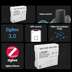 Easy set up,work with Tuya Smart life Zigbee Gateway hub.Once configured with tuya app,then link to alexa app,then you can voice control all 4 channel or individually remote each channel.If it's connected to alexa app directly through echo device with zigbee hub,it will be discovered as 1 channel only Automate your Garage gate door shutter Blind Curtain,with 3 working mode,in latching mode works as wireless switch,momentary mode works as wireless button,Interlock mode wireless remote control shutter blind curtain,press the mode change button to set working mode you need. Protocol, One-tap Pairing: Adopts ZigBee3.0 protocol, you can quickly add it to tuya ZigBee Bridge, getting them paired via a single tap on the app Voice Control,works with Amazon Alexa and Google home devices for complete voice control, remote control and Intelligent timing. Free your hands.With 433Mhz RF receiver built in,support fixed learning code 433Mhz RF(don't included) 220V 4 Channel Zigbee 3.0 Smart Relay,Working voltage DC 5V or AC 85-220V,ZigBee dry contact relay(without voltage in ouput),turn on/off 4 appliance individually. alexa integrate your home automation,with ABS enclouse included Timer and schedule.set countdown/loop timer schedule for convenient life,share control with your family,create smart scene with your other smart device