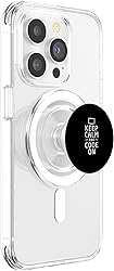 keep calm and code on. code motive keept calm Design perfect for a coding enthusiast for a coding session MagSafe base attaches the PopGrip to your MagSafe-compatible case (not included). Printed top is swappable with other compatible PopGrip models. Just press flat, turn 90 degrees until you hear a click and remove to swap. Compatible with iPhone 12, iPhone 13, and iPhone 14 models. Works best with smooth, hard MagSafe compatible case. Wirelessly charge your iPhone by sliding off the magnetic PopGrip and setting your iPhone on a wireless charger.