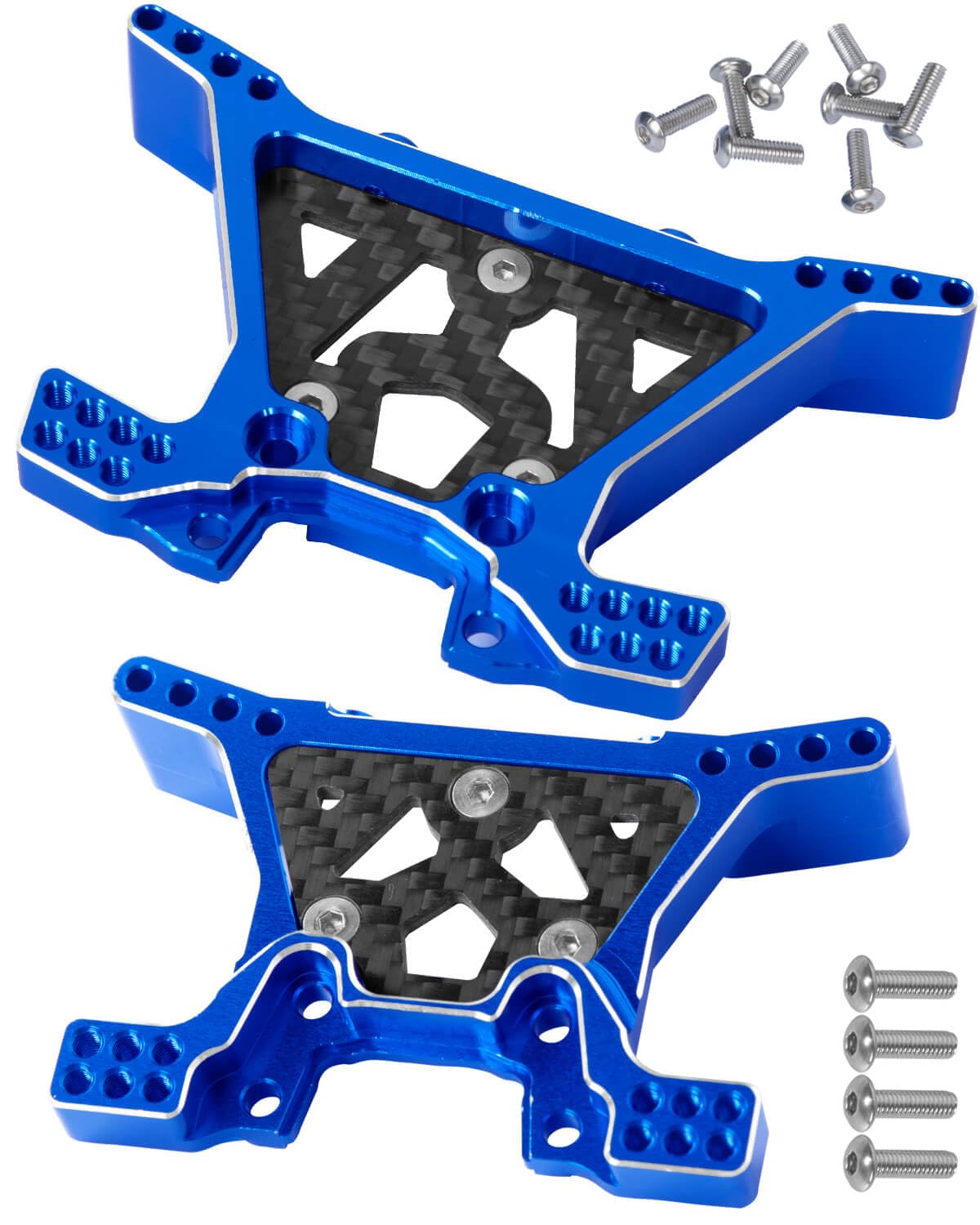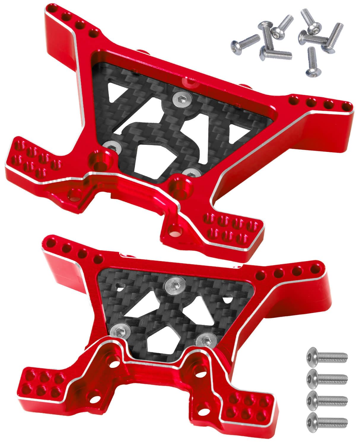 - 【High-quality Material】: Alloy Front Rear Upper Gearbox Covers and Shock Tower of 6061 anodized aluminum, precision CNC machined, lightweight and durable, increase the long-lasting durability.