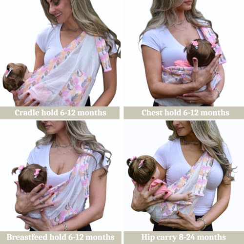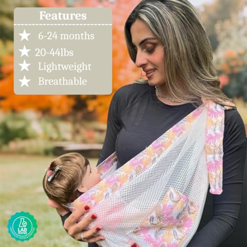Baby to Toddler Sling Carrier, Toddler Carrier 25-60 lbs – Baby Travel Essential, Adjustable Mesh Sling with Secure Safety Buckle & Comfortable Hip Sling with One Hand Support – Tropical Pink