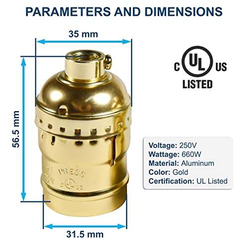 - 【Brand】HQRP® E26/E27 Vintage Lamp Socket; Electrical Rating: 40-660W 125V/250V; 1/8 IP Threads; UL Listed;