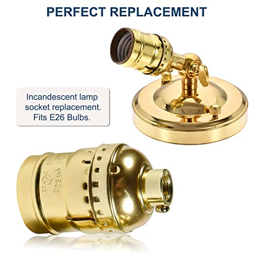 HQRP E26/E27 Vintage Light Socket, Medium Base Lamp Holder Replacement, 125V/250V, 1/8 IP Threads, UL Listed, Art Deco Style, Brass