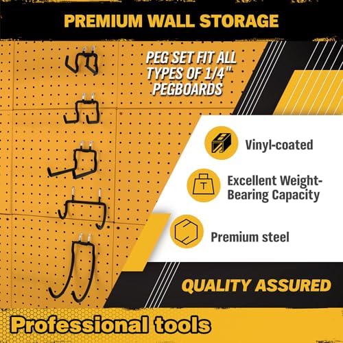- EASY INSTALLATION - Designed to fit all 1/4" pegboards, these hooks are simple to install and securely hold your items without falling off. Perfect for pegboard wall organization, these peg board hooks for hanging are ideal for homeowners seeking quick and reliable storage solutions.