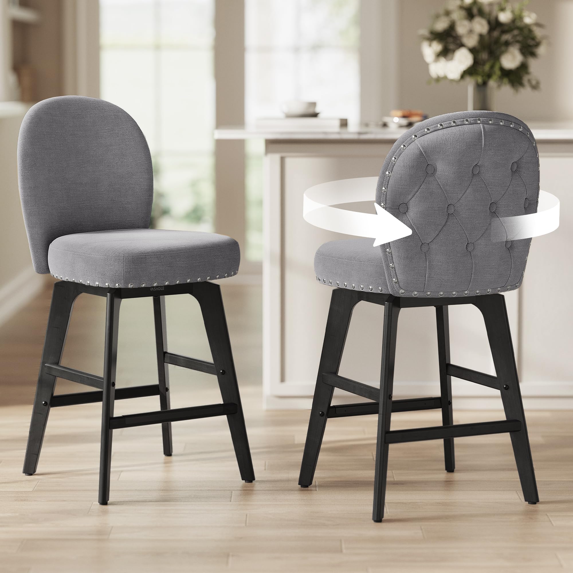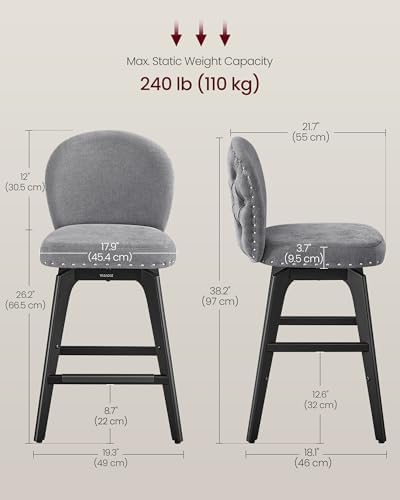 • [Sturdy & Stable] This set of 2 bar stools with solid wood legs is sturdy, able to hold up to 240 lb. The swivel leveling feet prevent wobbling on uneven floors while protecting against floor scratches. The metal-protected footrest ensures long-term use