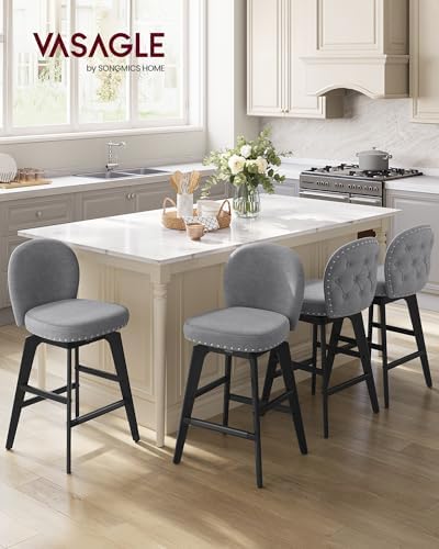 VASAGLE Bar Stools Set of 2, Swivel Counter Height Bar Stools with Back and Wood Legs, Chenille Fabric Upholstered Barstools, 26.2-Inch Tall Counter Barstools for Kitchen Island, Slate Gray