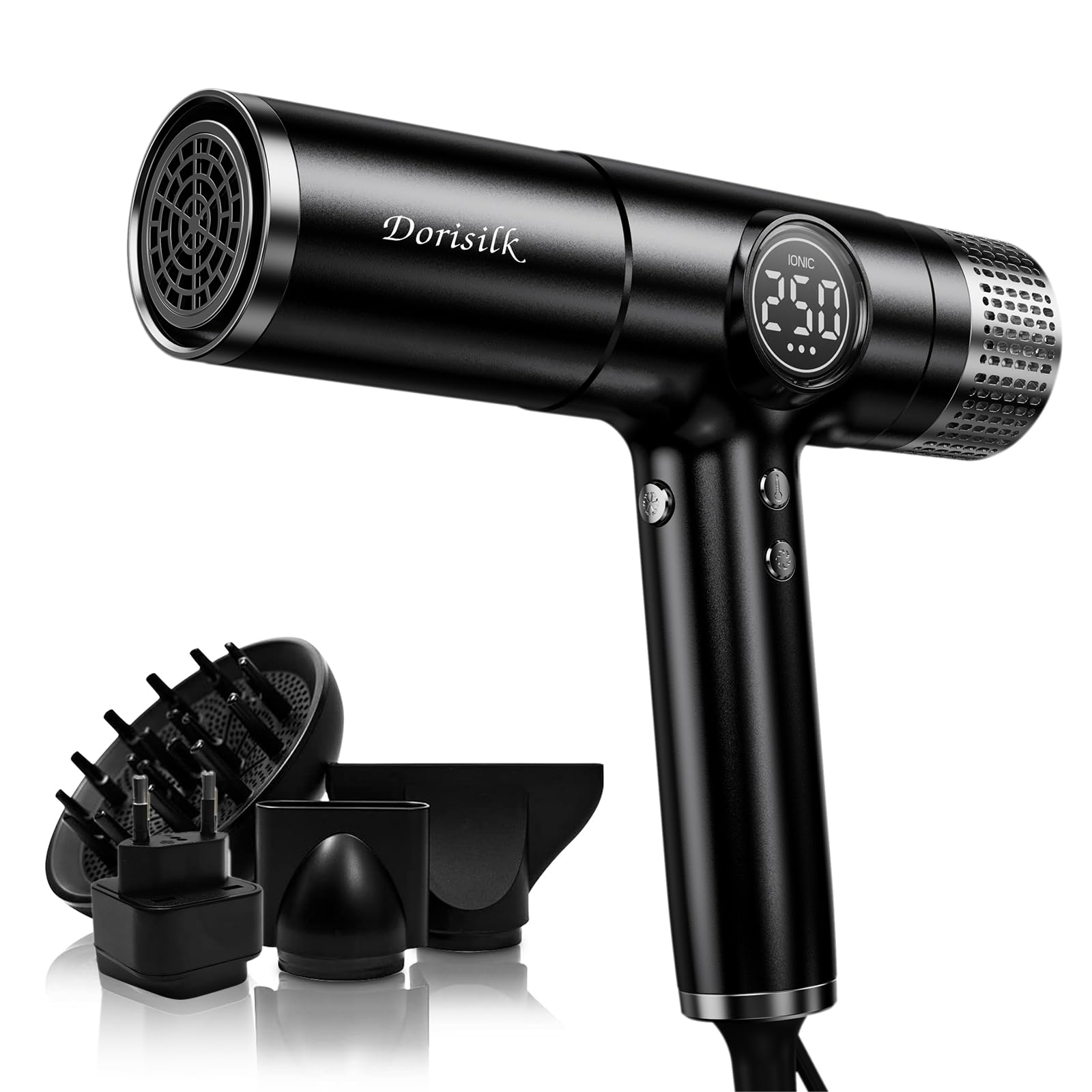 DORISILK Ionic Hair Dryer 110,000 RPM High Speed, Professional Blow Dryers for Salon Home Use, Portable Blowout Hair Dryers Lightweight with Nozzle Hot & Cold Selection Gift for Women Girl, Pink Blue