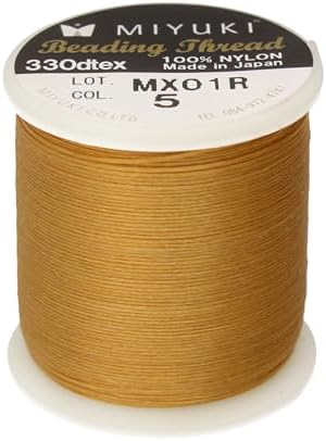 MIYUKI EXCELLENCE: Based in Japan, Miyuki has led the glass seed bead industry since the 1930s. Renowned for quality and innovation, Miyuki ensures precision and consistency in every bead and thread for your creative projects. PREMIUM THREAD: This gold-colored pre-waxed nylon bead thread measures 0.2mm thick (330 dtex) and comes in a 50-meter (55-yard) spool. Ideal for delica beads, stringing, weaving, and various craft applications. VIBRANT COLORS: Choose from an array of rainbow-inspired hues—basic, bright, and primary. These colors are curated to ignite creativity and add personality, while the durable thread ensures detail and long-lasting beauty. CREATIVE VERSATILITY: Perfect for seed bead projects, loom work, and off-loom techniques like peyote or brick stitch. This thread supports complex patterns, allowing your detailed designs to shine with structure and strength. BIGGER SIZE AVAILABLE: Also available in a 500-meter (545-yard) spool for larger projects, in four essential colors: white, eggshell, silver, and black.