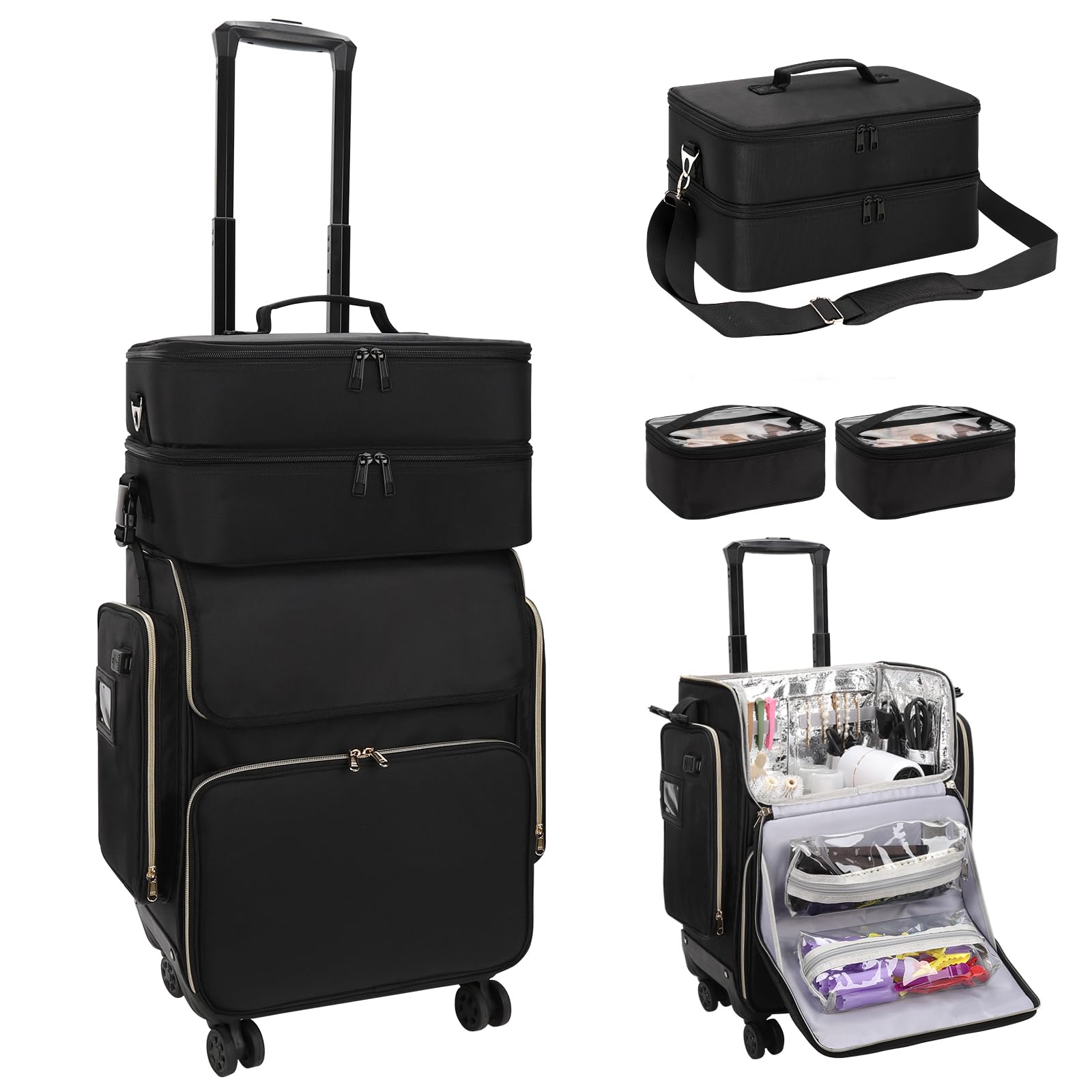 OCHEAL Rolling Makeup Train Case,with 7 Pcs Clear Makeup Bags, 18" Carry On Travel Cosmetic Organizer Suitcase,Extra Large Storage Trolley Makeup Case On Wheels for Hairstylist Cosmetology Artist