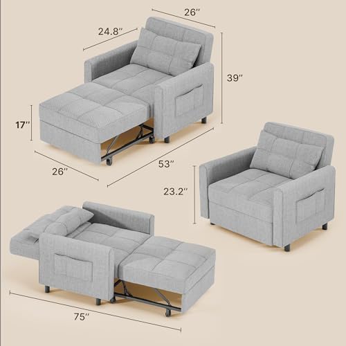 - Stable and Durable: The sleeper chair features a solid steel frame and high-quality sponge for lasting support and resilience. The breathable linen fabric ensures excellent comfort for a satisfying seating experience