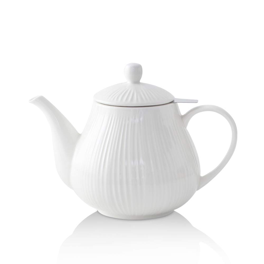 - 【LARGE INSULATED HANDLE AND STAINLESS INFUSER】: Great handle is comfortable and roomy enough for your fingers to grasp and hold. With a good quality stainless infuser, this porcelain teapot fits well and is enough for your loose tea to move as it steeps.