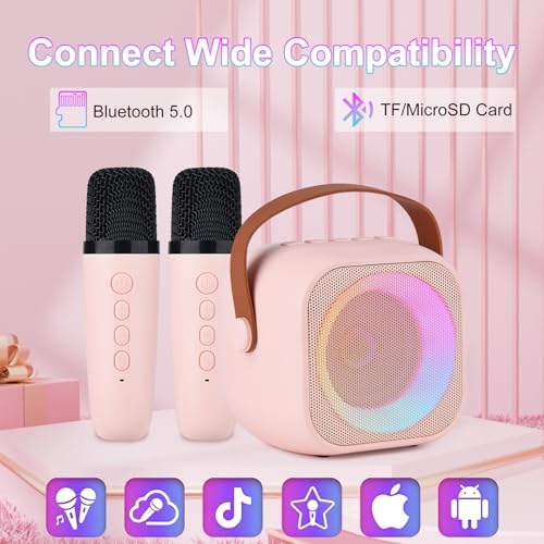 - 【Perfect Gift】With its stylish design and beautiful packaging, this karaoke machine makes for a cool gift for girls aged 3, 4, 5, 6, 7, 8, 9, 10, 11, 12+. Transform any place into a stage with this ultra-portable mini karaoke machine. Perfect for birthdays, Christmas, and other festive occasions