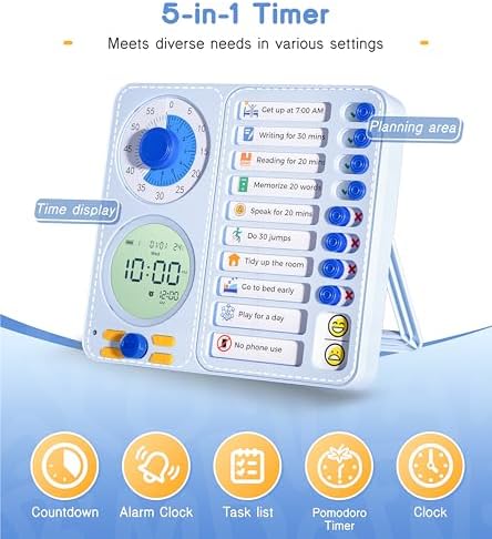 - 3-in-1 Visual Timer for Kids & Adults : This time management tool combines visual timer, digital clock, and chore chart, helping both kids and adults stay on schedule. Designed for kids with ADHD, ASD, and special needs, this productivity timer ensures a distraction-free, making it ideal for classrooms and study areas and home,building important planning skills