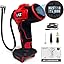 - 【WITH LED BULBS】: This portable tire inflator features a built-in flashlight with 3 modes (strobe, SOS, and steady light), making it ideal for nighttime emergencies or low-light conditions. It comes with four nozzle adapters to meet most of your inflation needs, making it perfect for cars, SUVs, motorcycles, bicycles, sports balls, and inflatable pool toys