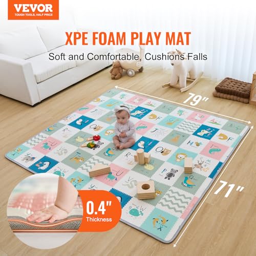 VEVOR Baby Play Mat, 71"x79" Extra Large Baby Crawling Mat, Non-Slip One-Piece Foam Baby Playmat, Foldable Reversible Floor Mat with Travel Bag, Waterproof Activity Playmat for Babies Toddlers Infant