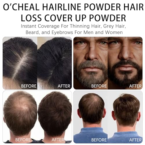 - [Multifunctional Hairline Powder] O'CHEAL hairline fiber offers versatile coverage, serving as a filler for thinning hair while also concealing gray hair strands to create a more youthful appearance. It’s ideal not just for hairlines but also for beards, eyebrows, and other areas needing a quick touch-up. Made with beeswax, it’s gentle on hair and won’t compromise its quality. Suitable for both men and women across all hair types