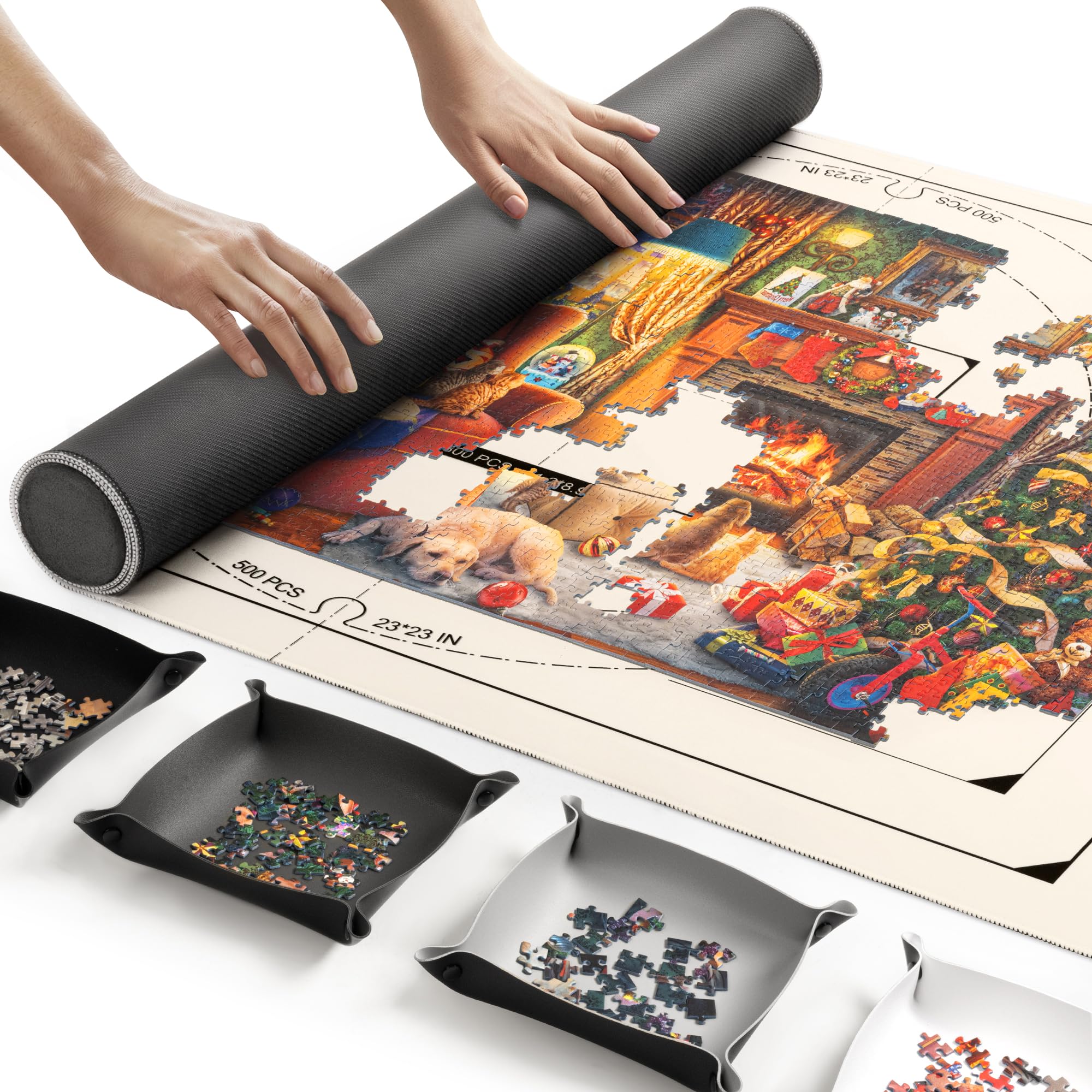 - 【Waterproof & Easy-to-Clean Surface】The smooth plastic surface is waterproof and easy to clean, eliminating glue residue and puzzle dust. A high-quality natural rubber mat cover protects your unfinished puzzle from dust, spills, and curious pets, keeping your work safe and secure