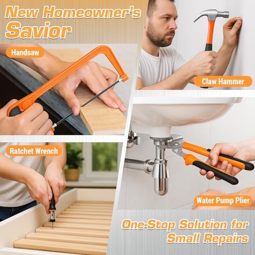 - ESSENTIAL TOOL KIT: This all-in-one tool kit includes the most reached-for tools like a hammer, wrench, and screwdrivers. It is the perfect solution for daily home maintenance and DIY repairs.