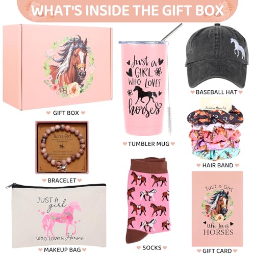 Horse Lover Gifts for Women Horse Stuff Cool Gifts for Horse Lovers Include Horse Tumbler Mug Makeup Bag Baseball Hat Bracelet Hair Band Socks Card for Birthday Christmas