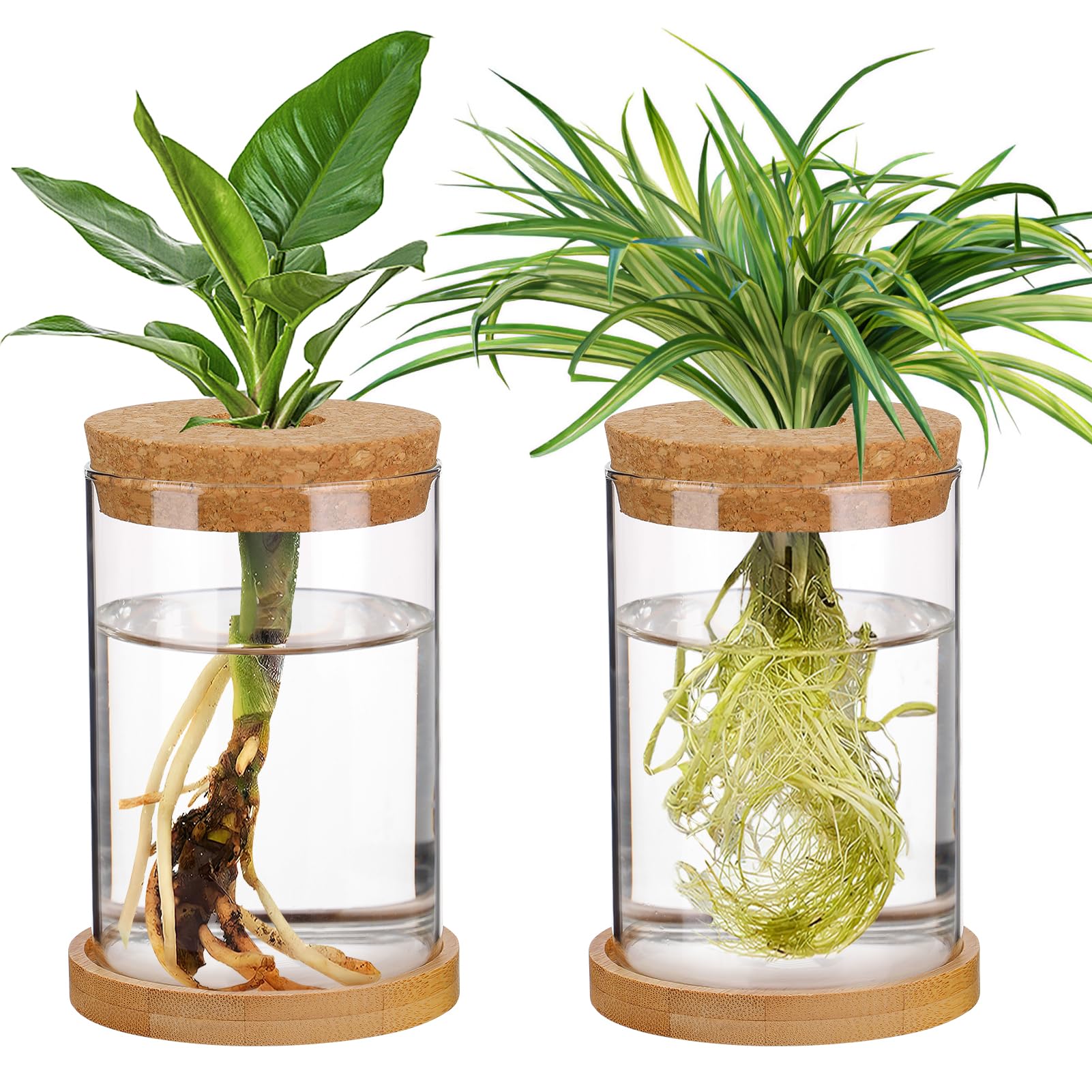 - 【Novel Design】 Our terrarium glass planters are equipped with hole plugs and bamboo tray bases to help fix plants and prevent them from falling. The straight shape provides enough space for plant roots and makes plants look more beautiful.