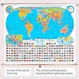BrightWay Educational US & World Intermediate Classroom Pull Down Map Set | 63" Wide Educational Wall Maps | Bright Colors | Large Fonts | Grades 6+ | Political Map with Flags & Physical Features
