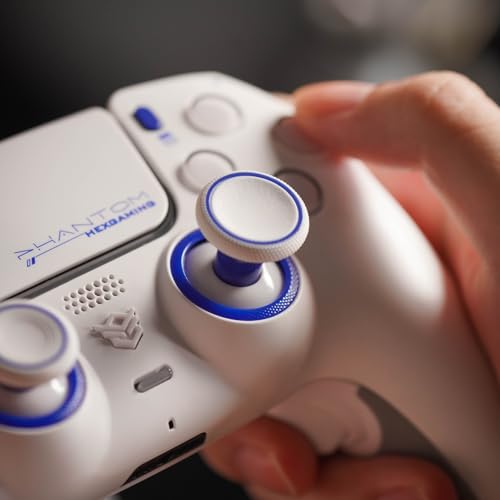 HEXGAMING PHANTOM Pro Gaming Controller with 4 Remappable Buttons, 6 Remapping Profiles, 8 Interchangeable Analog Stick, and Adjustable Triggers Compatible with ps5, PC, Mobile - Vision White