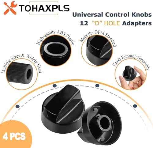 4 Pack Universal Control Knobs Replacement with 12 Adapter Compatible Oven/Stove/Range Universal Knobs Black - Please Focus on Matching knob D-Hole Size