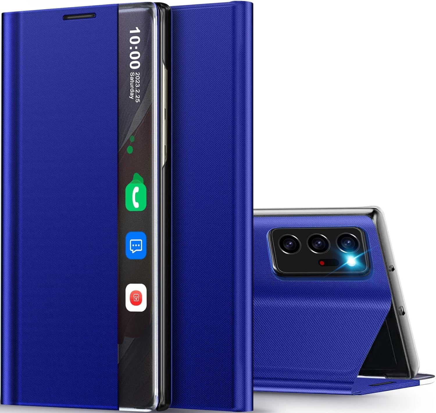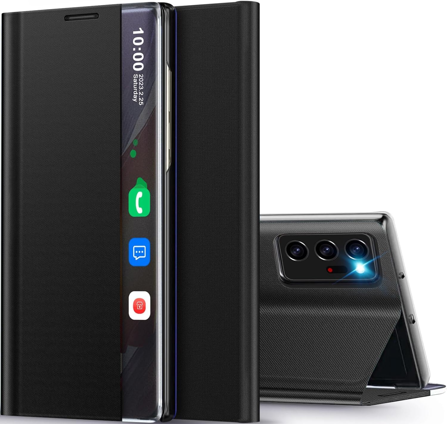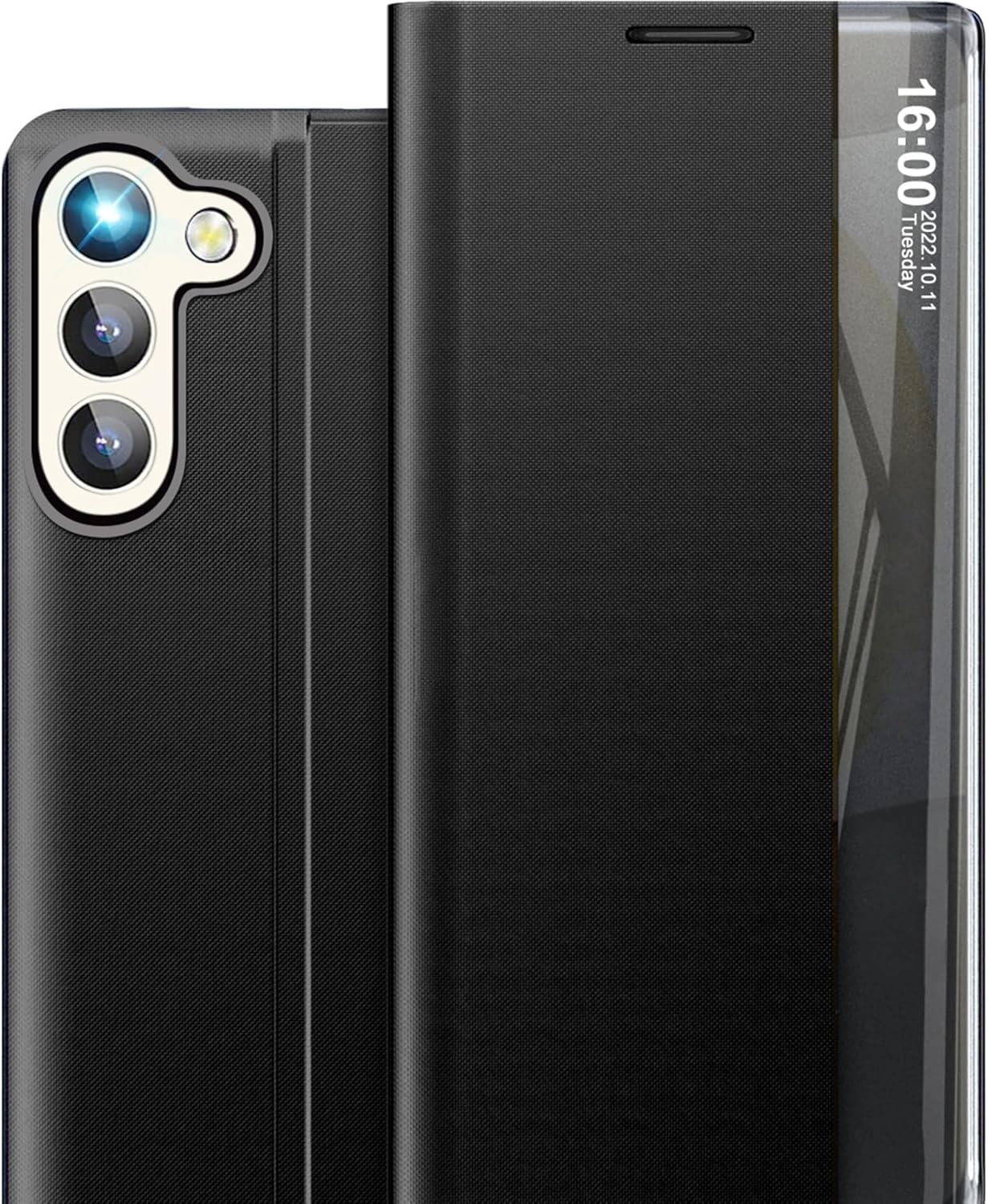 for Samsung Galaxy S21 Ultra Case View Clear Smart Window, with Kickstand for Samsung S21 Ultra Case Luxury Flip Slim Mirror Hard PC Leather View Clear Smart Window for Samsung S21 Ultra Cover Black