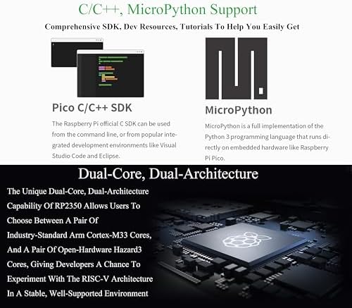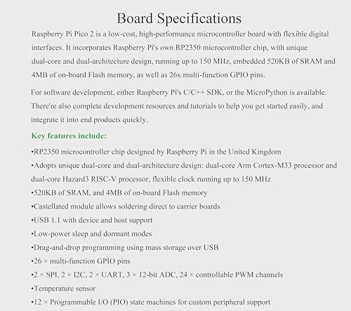 Pico 2 Kit with Pre-Soldered Header Compatible with Raspberry Pi Pico 2 Microcontroller Board +USB Cable, Using RP2350 Chip, Dual-Core & Dual-Architecture Design, 520KB SRAM 4MB Flash (3 Items)