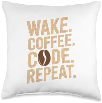 Wake Coffee Code Repeat Funny Programmer Coffee Throw Pillow