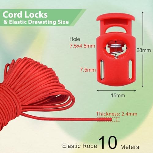 A3-red 25pcs Cord Locks+ 10 Meter Elastic Cord