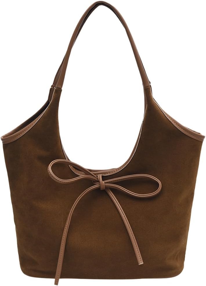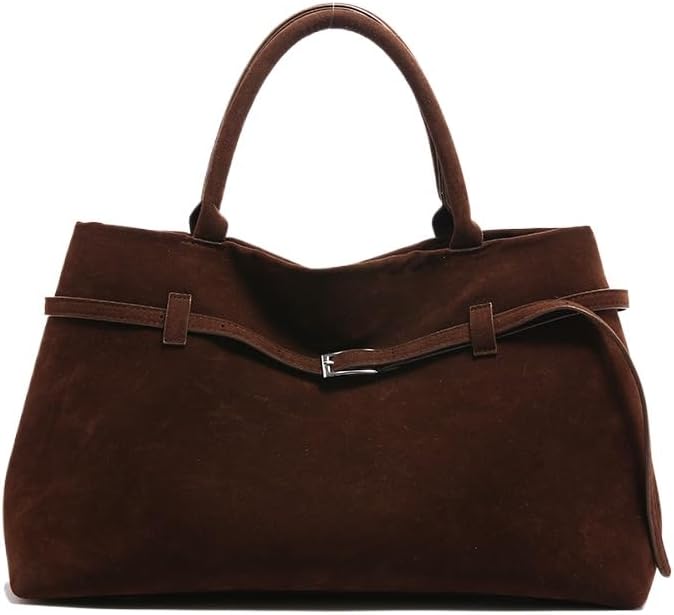 Brown Suede Tote Bag for Women Slouchy Work Bag Large Capacity Top Handle Bag Shoulder Hobo Bag Suede Handbag
