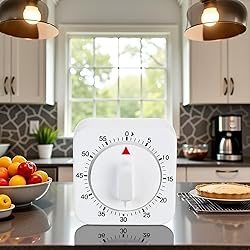 MECHANICAL DESIGN: 60-minute wind-up timer with easy-to-read visual clock face and no batteries required for reliable kitchen timing LOUD ALARM: Features distinct audible alert that ensures you won't miss when time is up, perfect for busy kitchen environments VERSATILE USE: Ideal for multiple kitchen tasks including cooking, baking, and general time management needs EASY OPERATION: Simple wind-up mechanism allows quick and precise time setting without complicated controls VISUAL TRACKING: Clear time markers enable at-a-glance monitoring of remaining time during cooking or baking tasks