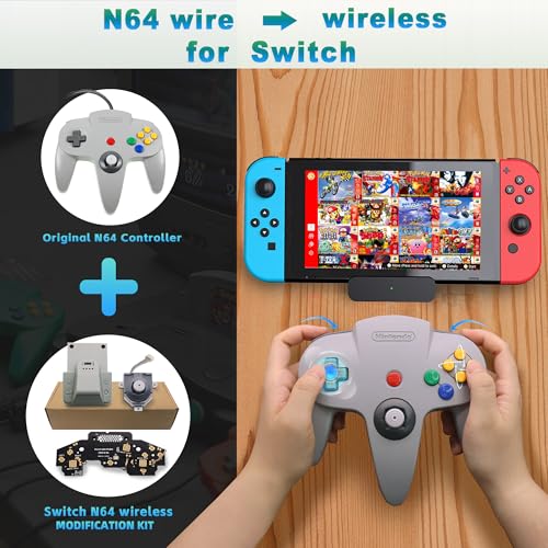 Kit de Modificación para el Controlador Original N64 – Haz que el Controlador N64 sea Compatible con Nintendo Switch – Fácil Instalación, Larga Duración de la Batería, Soporte Multijugador, Paquete de Vibración – Soporte paraJoystick de Hall