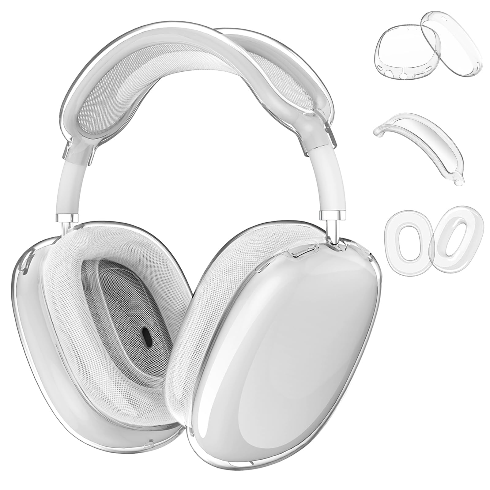 - Precise cutouts: Without removing the protective cover when charging. Precise cutout offers an easy access to your Airpods Max and the pairing button.Package Includes: 1× Pair of AirPods Max Clear Case Cover,1 x pair of AirPods Max Clear Earpad Covers,1 x pair of AirPods Max Clear headband cover,