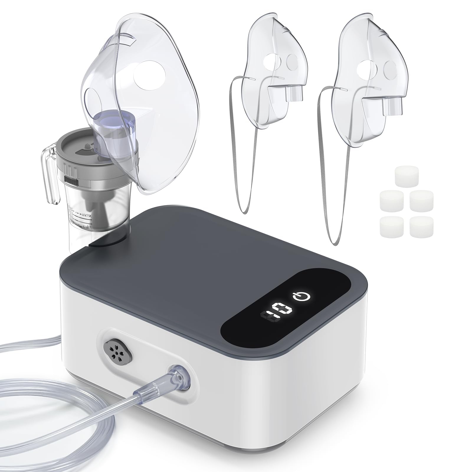 - Smart Digital Display Nebulizer-New timing function and LED digital display, intelligent control, easy to operate. There are 3 timing options available:10min 20min 30min, more accurate control of each treatment time.
